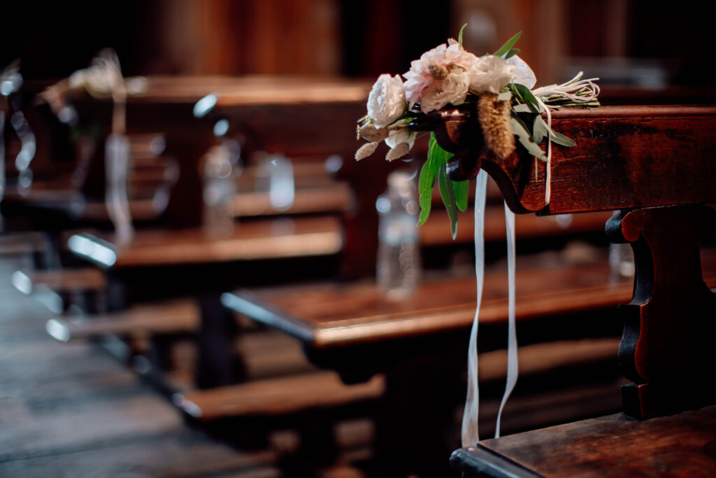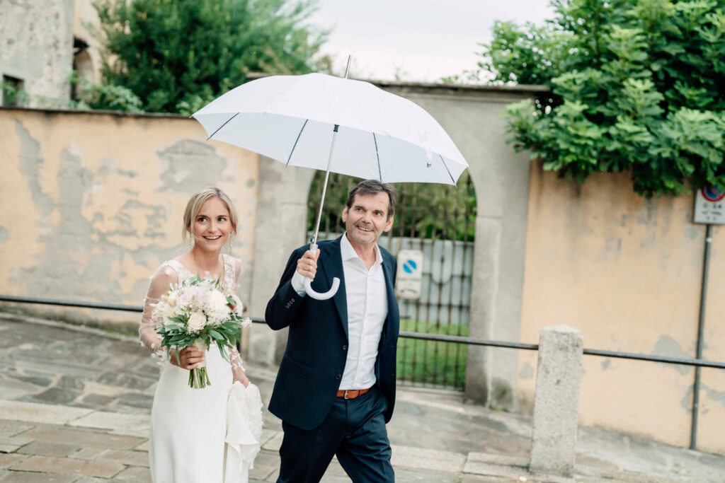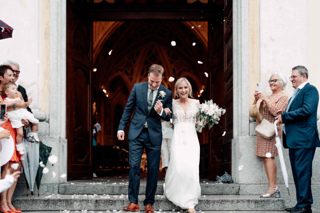 For the religious ceremony, a moment especially dear to Muriel’s heart, the couple chose the Santa Maria Assunta church, nestled in the heart of the village of Orta San Giulio.
