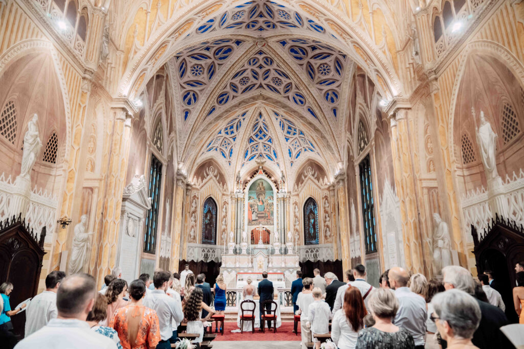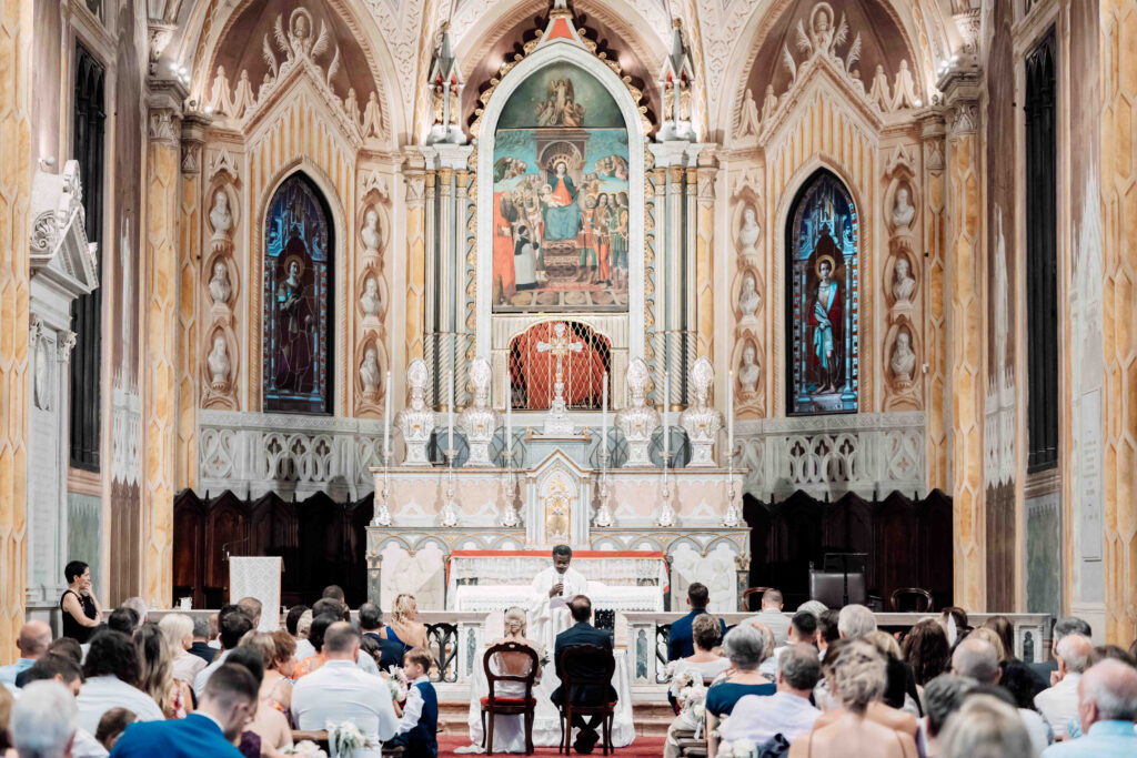 This vibrant baroque church perfectly embodies the authentic charm of Italy. To add a joyful and soulful touch to the celebration, they invited a gospel choir whose energy lit up the ceremony and carried through to the church steps—welcomed by warm applause from their guests… and even from passing tourists, captivated by the atmosphere.
