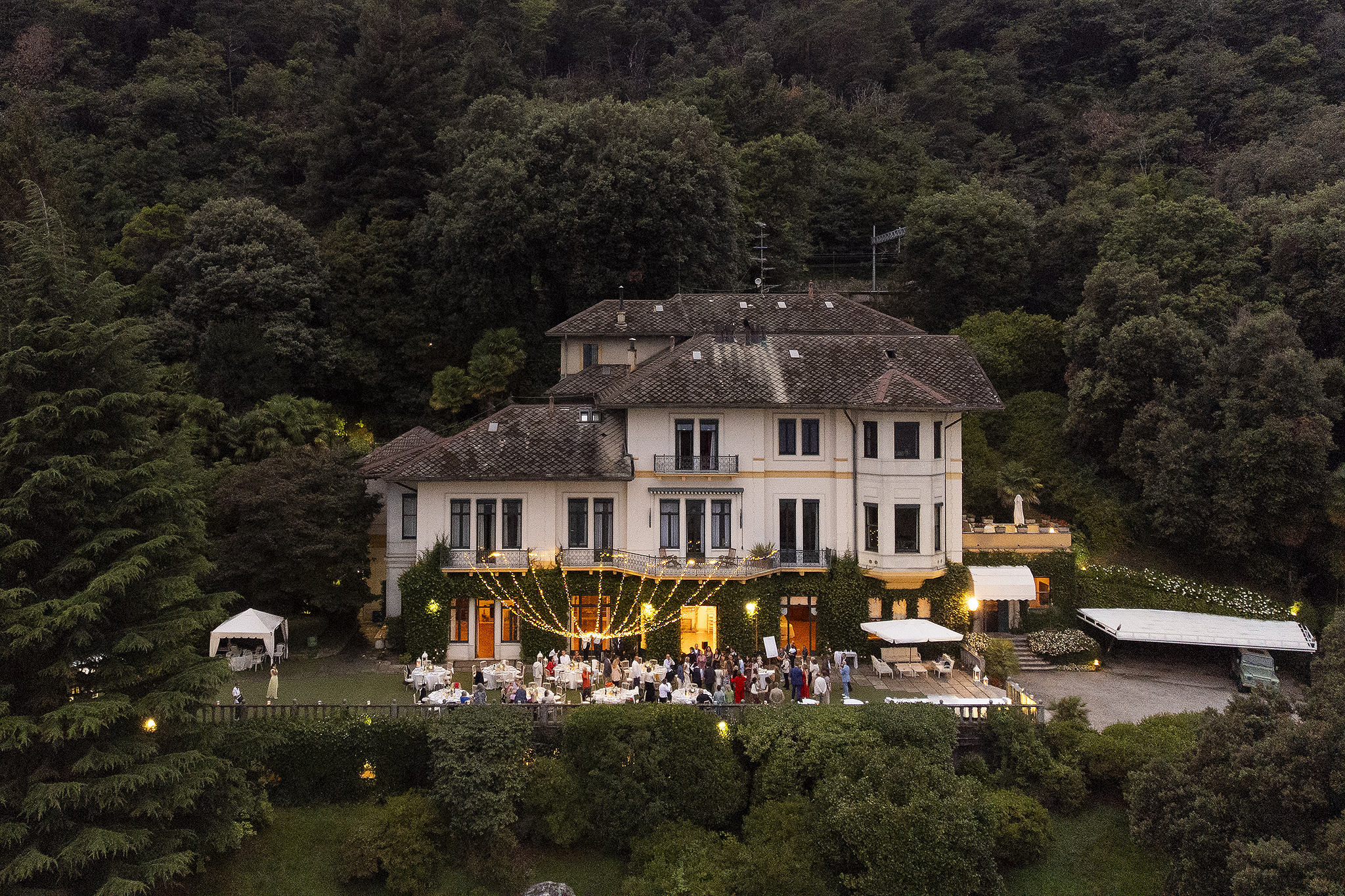 On the “Costa Fiorita” (flowery coast), the Lombard side of Lake Maggiore, stands the Villa Repui surrounded by his park of ten hectares. On top of a sunny hill, its privileged position confers a view overlooking the lake. The villa, design architecture, was built in the 60s as a summer residence of the family of the inimitable “Amaro 18”. Today, with its new high-standard spacious exterior structure, and its huge pool, it lends itself perfectly to exclusive and comfortable receptions for those who want a place for modern and original wedding.